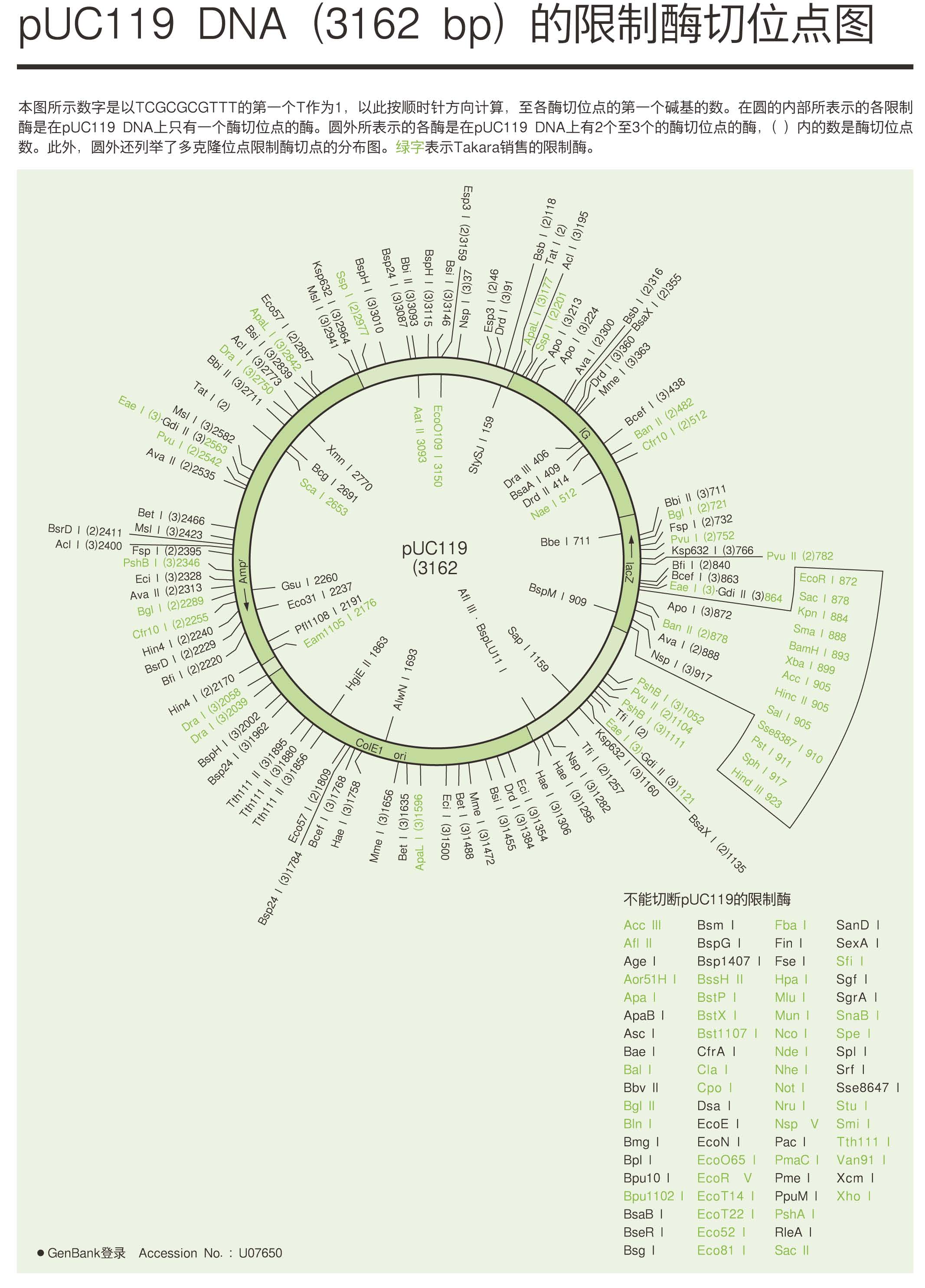 pUC119 DNA的限制酶切位點圖