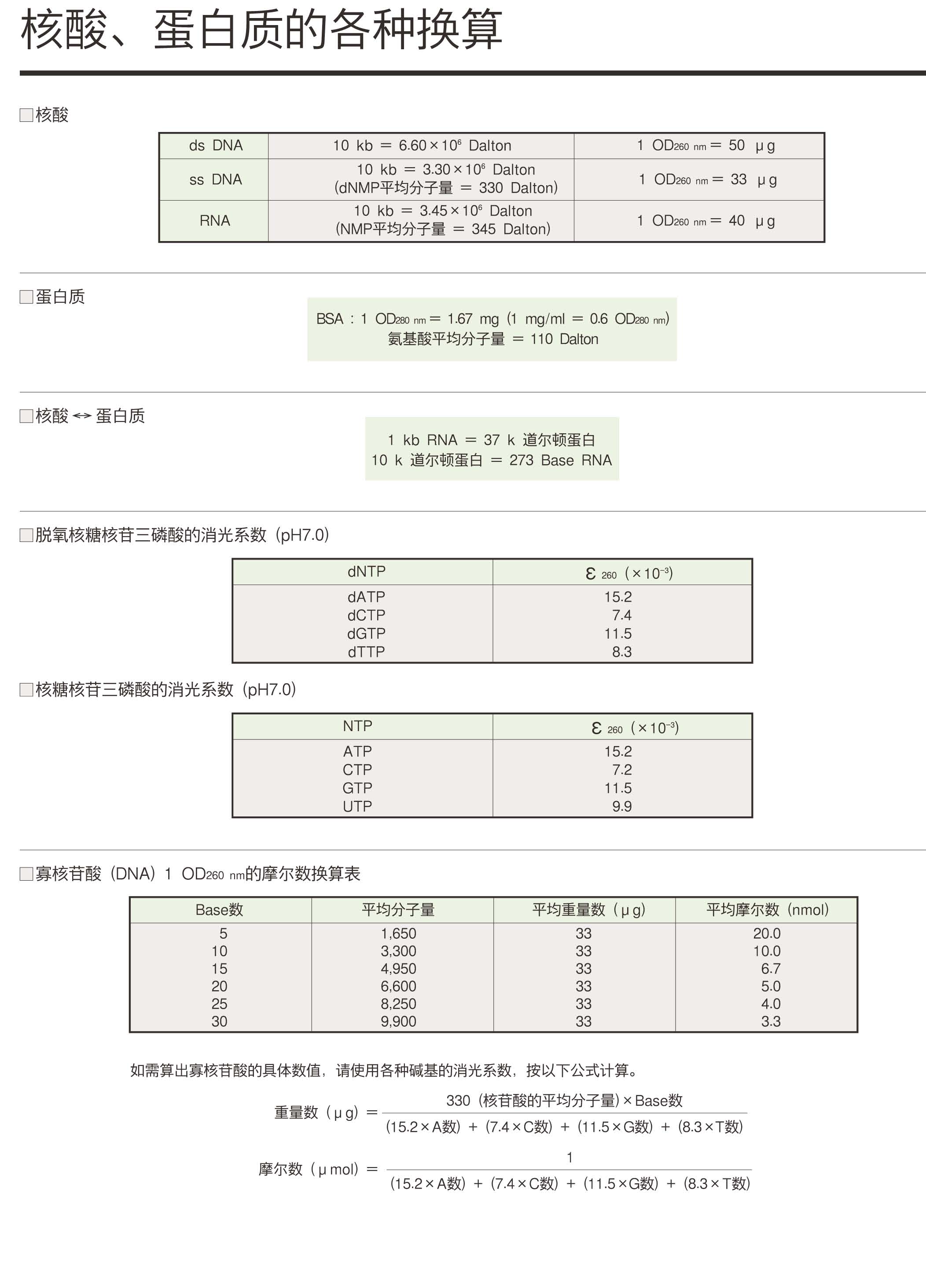 DNA分子質量與摩爾數(shù)的換算公式