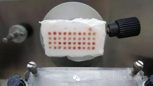 由用戶提供自己收集(或經(jīng)動(dòng)物實(shí)驗(yàn)獲得)的組織標(biāo)本,我們按照后續(xù)實(shí)驗(yàn)?zāi)康幕蛘n題內(nèi)容要求,設(shè)計(jì)制作組織芯片;