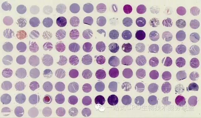組織芯片(tissue chip):又稱組織微陣列(Tissue MicroArrays, TMA),是將多個(gè)組織標(biāo)本按照實(shí)驗(yàn)設(shè)計(jì)需求,以規(guī)則方式排布(陣列)于同一載玻片上,進(jìn)行同一指標(biāo)的原位組織學(xué)研究。研究者一次可有效利用成百上千份自然或出于疾病狀態(tài)下的組織標(biāo)本來(lái)研究特定基因及其所表達(dá)的蛋白質(zhì)與疾病之間的相關(guān)關(guān)系,對(duì)于疾病的分子診斷,預(yù)后指標(biāo)和治療靶點(diǎn)的定位,抗體和藥物的篩選等方面均有十分重要的實(shí)用價(jià)值。