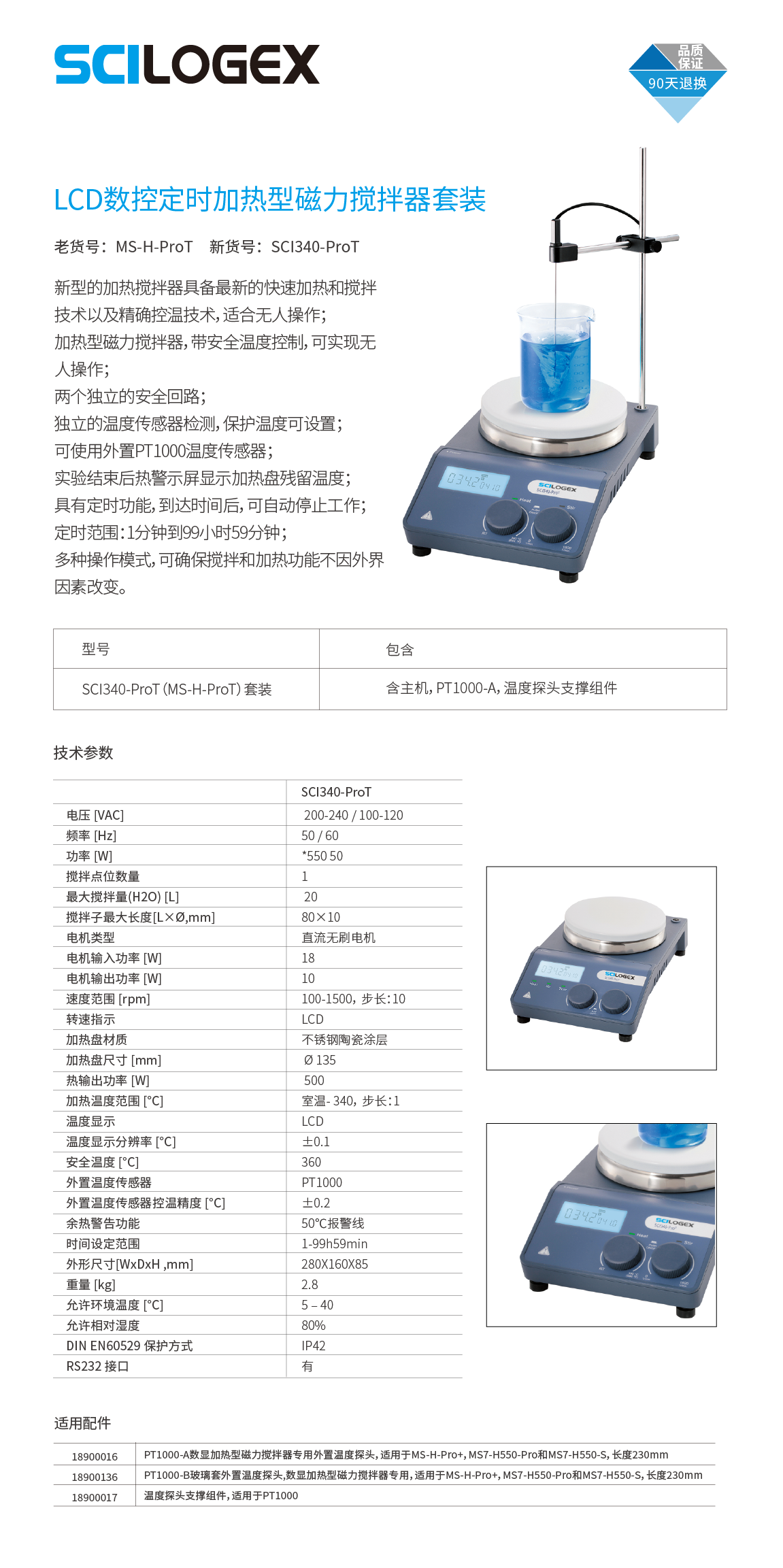 新SCI340-ProT老MS-H-PROT LCD數(shù)控定時(shí)加熱型磁力攪拌器套裝