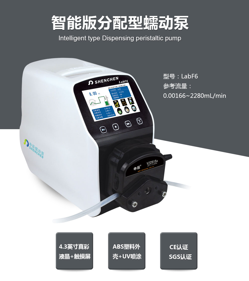 自動(dòng)分液器/連續(xù)分液器/智能分配型蠕動(dòng)泵,智能分配型工業(yè)蠕動(dòng)泵,采用ABS工程塑料外殼,加噴UV涂層,實(shí)現(xiàn)防腐蝕,防靜電保護(hù)。流線型機(jī)身設(shè)計(jì),工業(yè)級4.3英寸真彩色顯示,觸摸屏操作,轉(zhuǎn)速范圍1-600轉(zhuǎn)/分鐘,流量范圍0.00166-2280ml/min,可預(yù)設(shè)分配流量,分配時(shí)間,間隔時(shí)間,分配次數(shù),回吸角度,動(dòng)畫顯示工作狀態(tài),分配數(shù)據(jù),設(shè)定參數(shù),系統(tǒng)配置同屏顯示??蛇B接腳踏開關(guān)或開關(guān)信號,實(shí)現(xiàn)遠(yuǎn)程控制,適用于大流量、高效率、高精度灌裝。