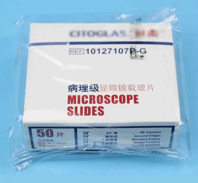 病理級顯微鏡載玻片,浮法玻璃材質(zhì), 拋光邊, 45° 角,帶CITOGLAS字樣,不夾紙. 塑塑包裝,50片/盒.
