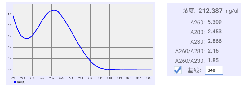 藥用植物大黃根莖組織RNA提取電泳,濃度測定圖