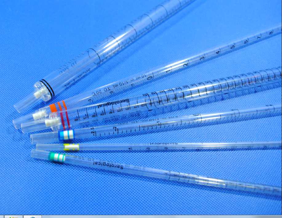 原料采用高透明的聚苯乙烯(PS),清晰的刻度線也方便使用者準確讀取,移液管的容量的校準率在±2%的范圍內(nèi)。目前移液管的容量有1ml,2ml,5ml,10ml,25ml,50ml。為方便使用者辨認,對應不同容量的七種色環(huán)印在移液管的頸部。