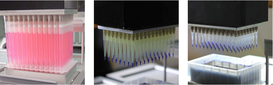 只需要用Medusa96高通量移液平臺,以及溶液槽, 1個普通操作人員,輕松完成1000盤/天的工作量。